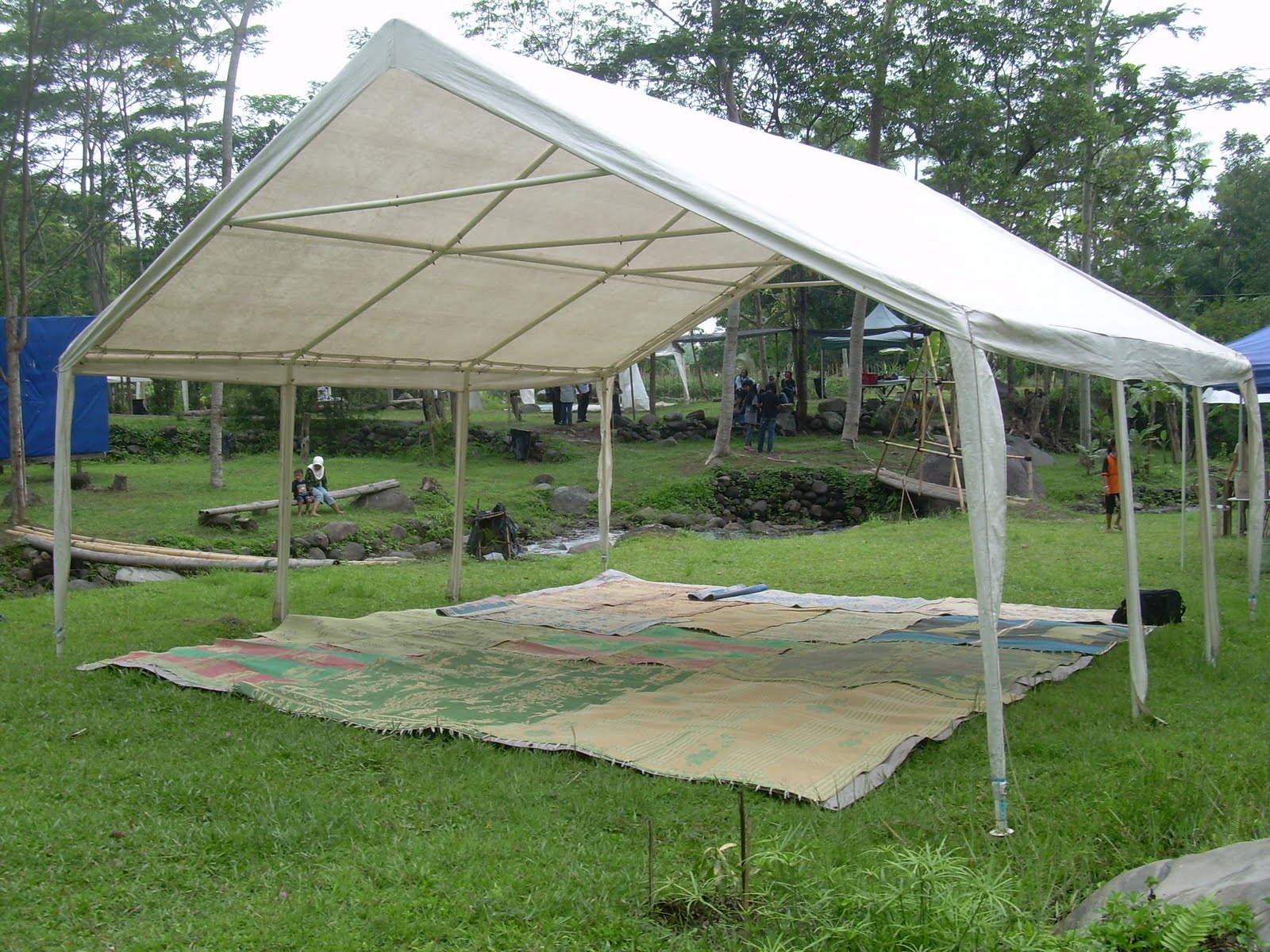 Kegiatan outbound terkadang membutuhkan ruangan yang cukup besar baik itu untuk mengumpulkan seluruh peserta maupun untuk mengadakan pesta makan. Jika tempat pertemuan dibuat permanen terlihat tidak begitu elok, nah tenda besar yang kami buat ini merupakan salah satu solusi nya. Tenda ini terlihat bisa menyatu dengan alam sekitarnya dan kokoh digunakan untuk menggelar berbagai hajatan.