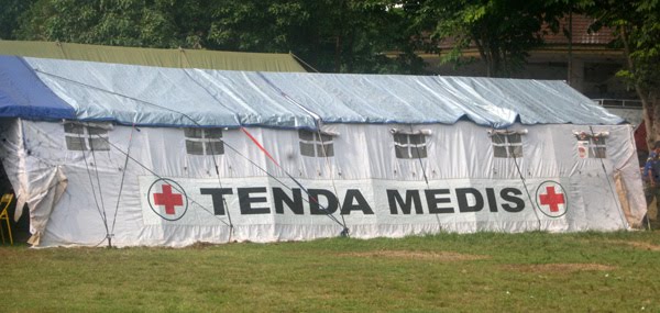 Foto-foto tenda medis atau tenda rumah sakit lapangan ini diambil di lokasi pengungsian gunung merapi di Universitas UPN Veteran Yogyakarta,